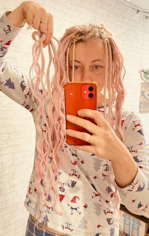 32. Прическа брейды в 2 хвоста с заплетёнными концами с добавлением цветного канекалона подходит как нельзя лучше для разного рода фестивалей.